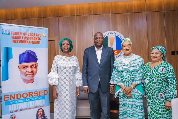 The National Chairman of the All Progressives Congress, Nentawe Goshwe Yiltwada, on Tuesday received the umbrella body of women aspirants in the party at the National Secretariat in Abuja.