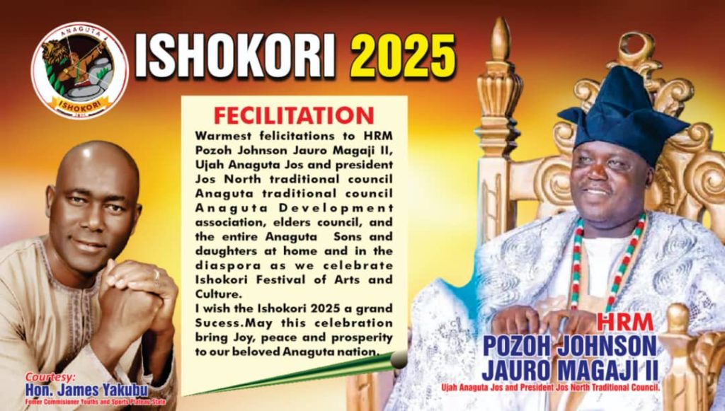 Former Commissioner of Youths and Sports Development in Plateau State and Frontline politician, Hon James Yakubu has felicitated with the Anaguta people of the state on the occassion of Ishokori Anaguta 2025. Ishokori is the day set aside yearly by the Anaguta people to celebrate their rich cultural heritage.