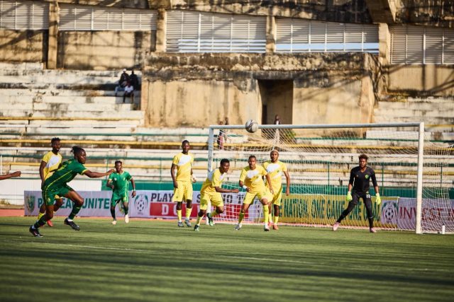 A dangerous freekick awarded to the away team in an exceptional display of bravery by FIFA Yusuf in the 94th minute created a nervy moment and sent the stadium into cemetery -like silence but United’s backline defended resolutely to the applause of the home fans